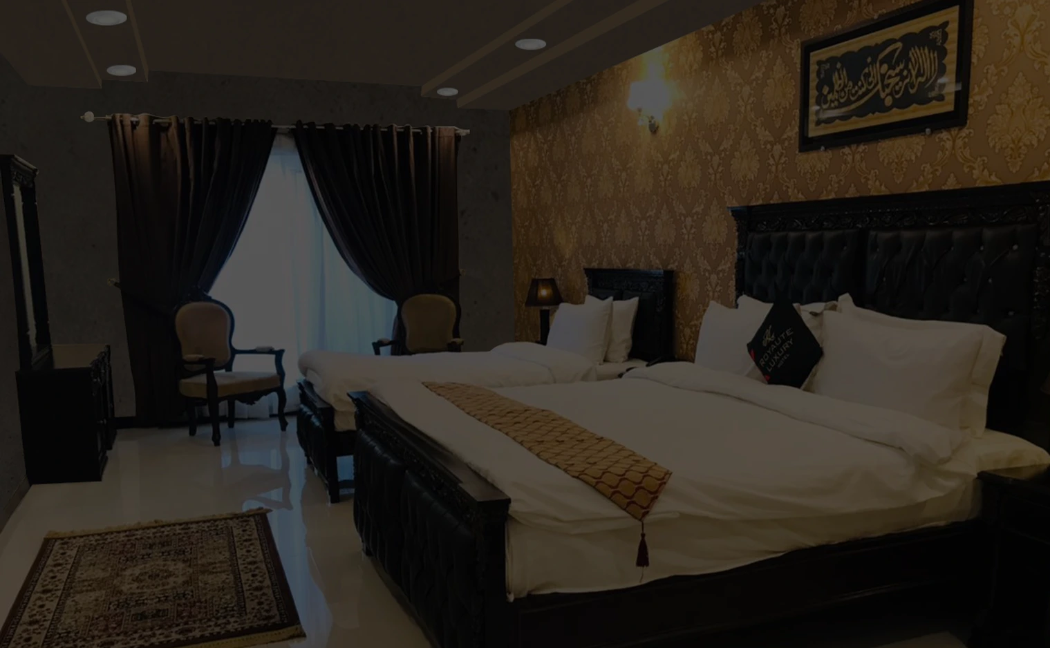 Royaute Luxury Hotel Defence Road Sialkot brings the best Superior Family Rooms in Sialkot having discrete patterns, soothing warm colors, classic paintings and stylish dark wood furnishings reflecting the true soul of Royaute and Luxury. Each Superior Family Rooms accompanies a king sized luxury bed, large boudoir, luxurious white marble bathroom and extra bed which makes Royaute Luxury the number one choice among family hoteliers in Lahore. These suites have an inspiring aura of their own slip in the plush and furry slippers.